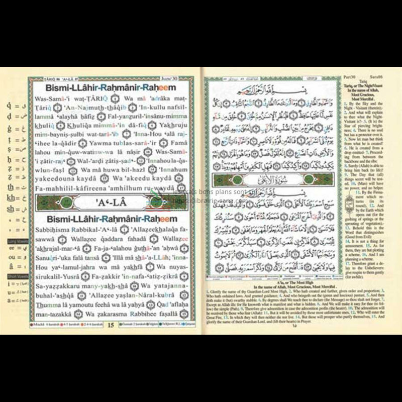 Chapitre 'Amma Anglais - tajwid et phonétique - Index des mots du Coran - Hafs: