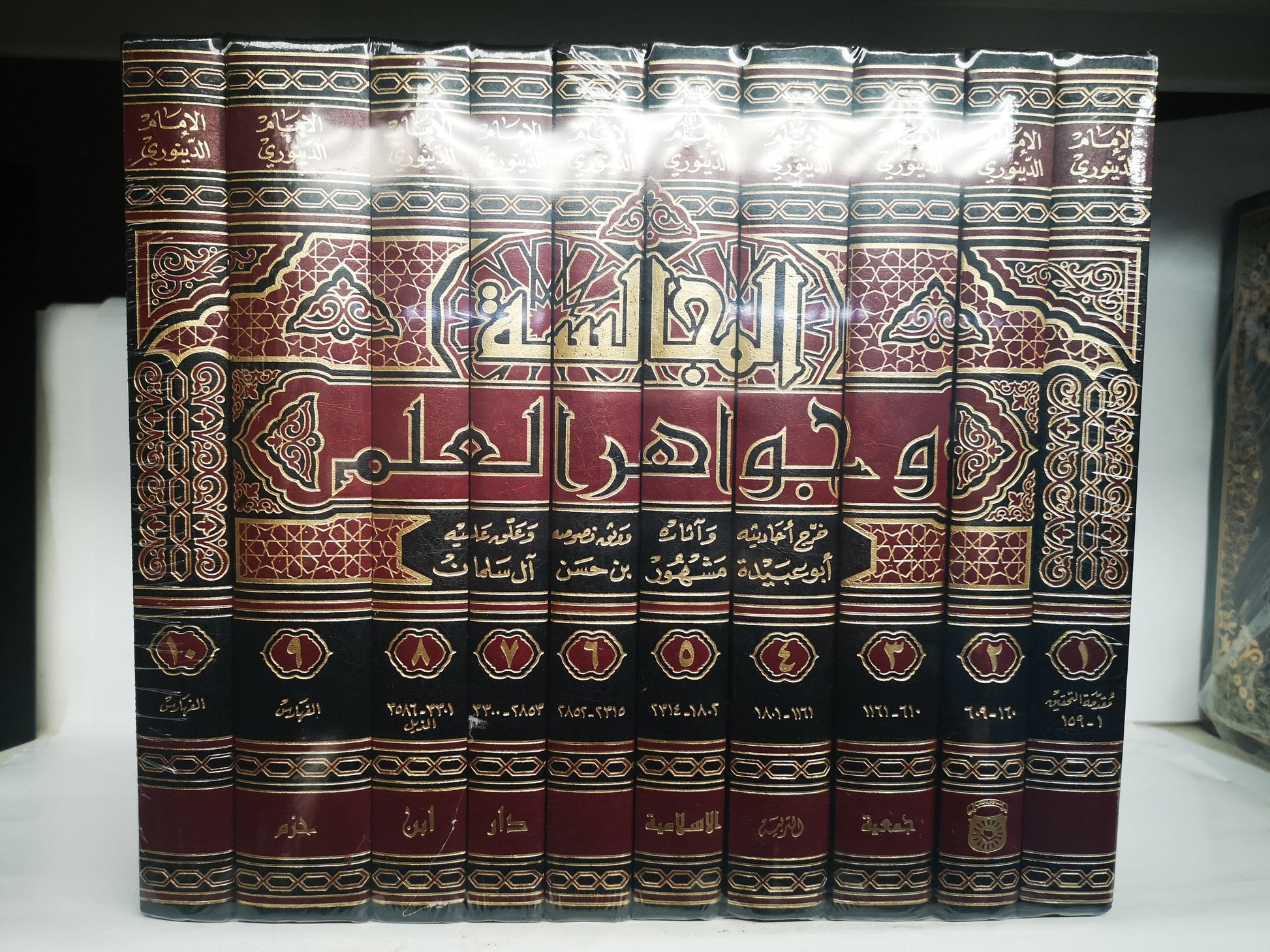 كتاب: « المجالسة وجواهر العلم »، للعلامة الفقيه المحدث « أبي بكر أحمد بن مروان الدينوري المالكي (ت333هـ) »، موسوعة علمية حوت مواضيع متنوعة وصفها صاحبها بقوله : " جمعت فيه علوما كثيرة من التفسير، ومعاني القرآن وفي عظمة الله عز وجل، ومن حديث الرسول ـ صلوت ربي وسلامه عليه ـ، وحديث الصحابة الكرام وأخبارهم رحمة الله تعالى عليهم أجمعين، ومن حديث أخبار التابعين والزهاد والحكماء والشعراء والنوادر وأخبار العرب وأيامها، وخبر الفرس وغير ذلك من فنون العلم، ولم ادع شيئا يحتاج اليه العالم والمتعلم ويجري ذكره في مجالسهم إلا وقد ذكرت في كتابي هذا منه طرفا وجعلته مختصرا كيلا يثقل على من كتبه، ويكون ذلك سهلا غلى من نظر فيه وحفظه ".