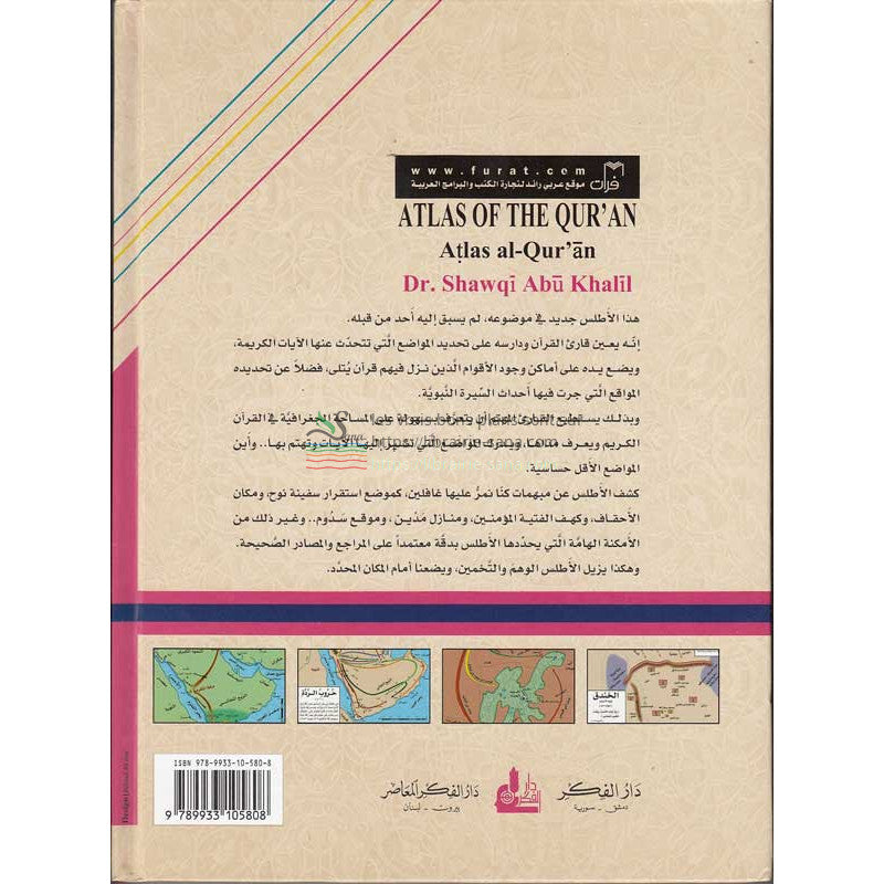 L'auteur, le docteur Chawqi Abu Khalil au travers de cette œuvre monumentale et unique en son genre "L'Atlas du Coran", cherche a donner une perception de l'espace géographique évoqué dans le Coran, à saisir son étendue et à mesurer son importance. Il répond à des questions ou points au sujet desquels nous ne possédons qu'une vision abstraite : 'Âd, Thamûd, les habitations de Madyan, le site de Sodome… et autres lieux, personnages ou groupes humains que l'Atlas a essayé de situer.
