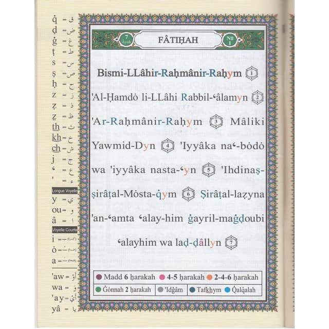 Après des années du travail acharné, par la grâce d' Allah et sa noble assistance a été achevée l' impression de ce saint CORAN pour aider le lecteur à bien suivre les règles de la récitation .