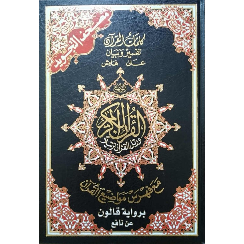 مصحف التجويد, القرآن الكريم و رتل القرآن ترتيلا برواية قالون عن نافع بالرسم العثماني ، و على هامشه كلمات القرآن تفسير و بيان.مع فهرس مواضيع القرآن