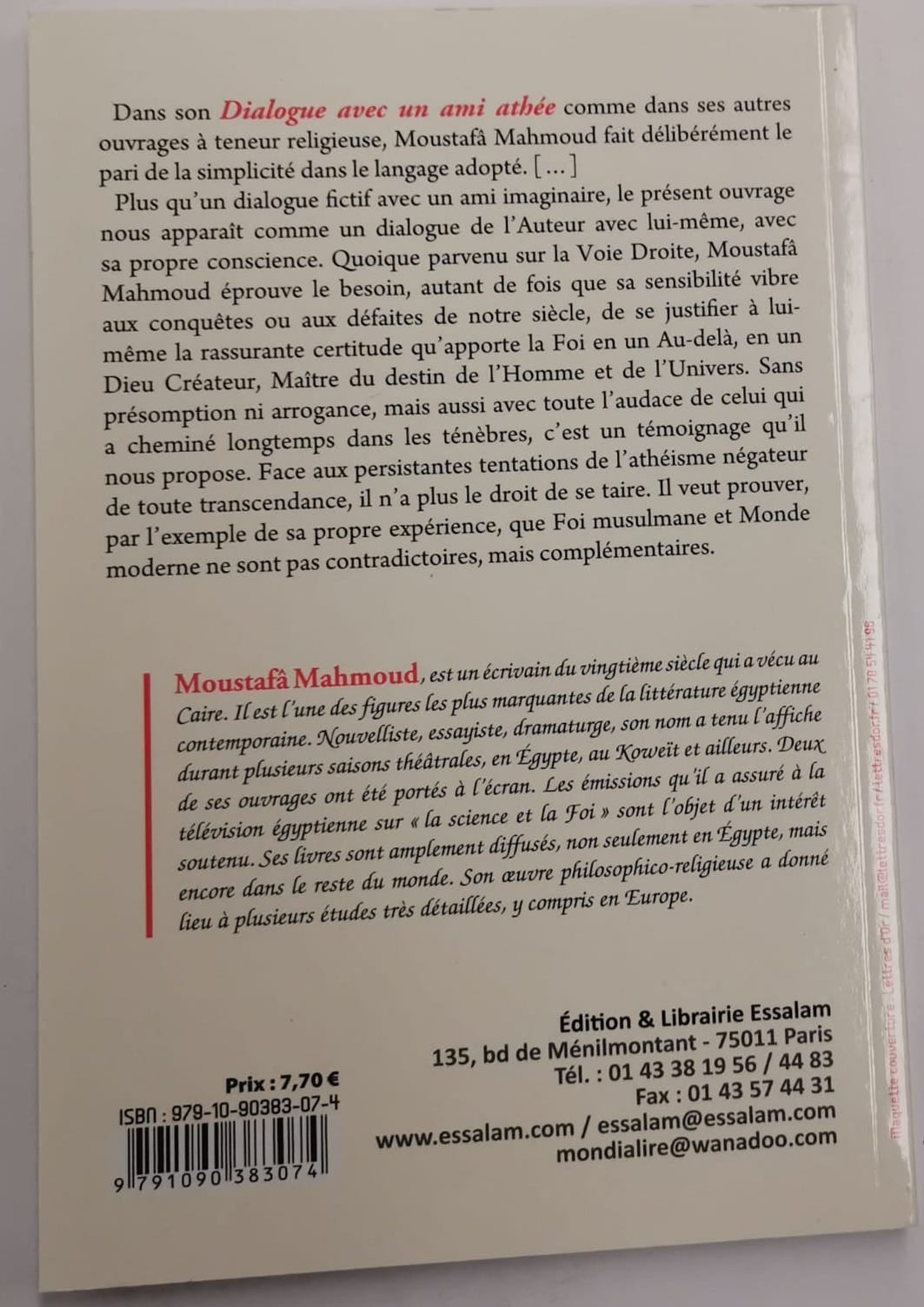 Plus qu'un dialogue fictif avec un ami imaginaire, le présent ouvrage nous apparaît comme un dialogue de l'Auteur avec lui-même, avec sa propre conscience. Quoique parvenu sur la Voie Droite, Moustafa Mahmoud éprouve le besoin, autant de fois que sa sensibilité vibre aux conquêtes ou aux défaites de notre siècle, de se justifier à lui-même la rassurante certitude qu'apporte la Foi en un Au-delà, en un Dieu Créateur, Maître du destin de l'Homme et de l'Univers. Sans présomption ni arrogance, mais aussi avec toute l'audace de celui qui a cheminé longtemps dans les ténèbres, c'est un témoignage qu'il nous propose. Face aux persistantes tentations de l'athéisme négateur de toute transcendance, il n'a plus le droit de se taire. Il veut prouver, par l'exemple de sa propre expérience, que foi musulmane et Monde moderne ne sont pas contradictoires, mais complémentaires.