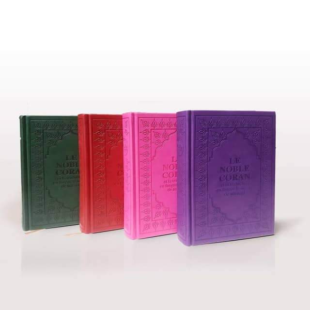 Format avec couverture rigide couleur Vert. En face de chaque page en version Arabe la page en français avec sens et traduction.
