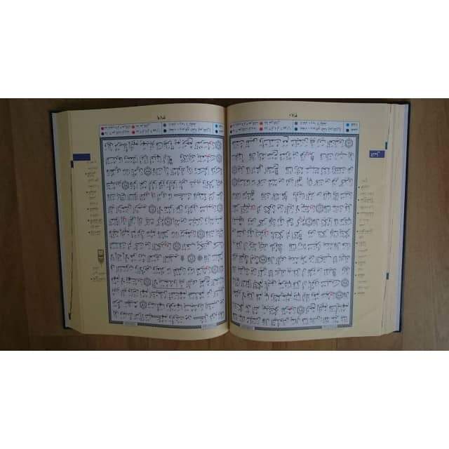 Mushaf Tajweed "AL WADIH": Le Saint Coran avec les règles de Tajwid, et explication de ses termes dificilles sur la marge chaque page, Lecture Hafs d'aprés 'Assim, la concordance avec le Rasm Al Othmani, Codification colorée pour faciliter la psalmodie du Coran ( On donne à la lettre une couleur pour indiquer la règle de récitation à appliquer (Rouge, Vert, Bleu, Gris), trés grand format (25 x35 cm), Couverture rigide bleu