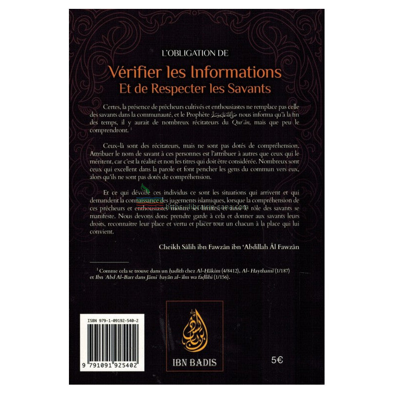 L'obligation de vérifier les informations et de respecter les savants, de Cheikh Salih Ibn Fawzan Al-Fawzan