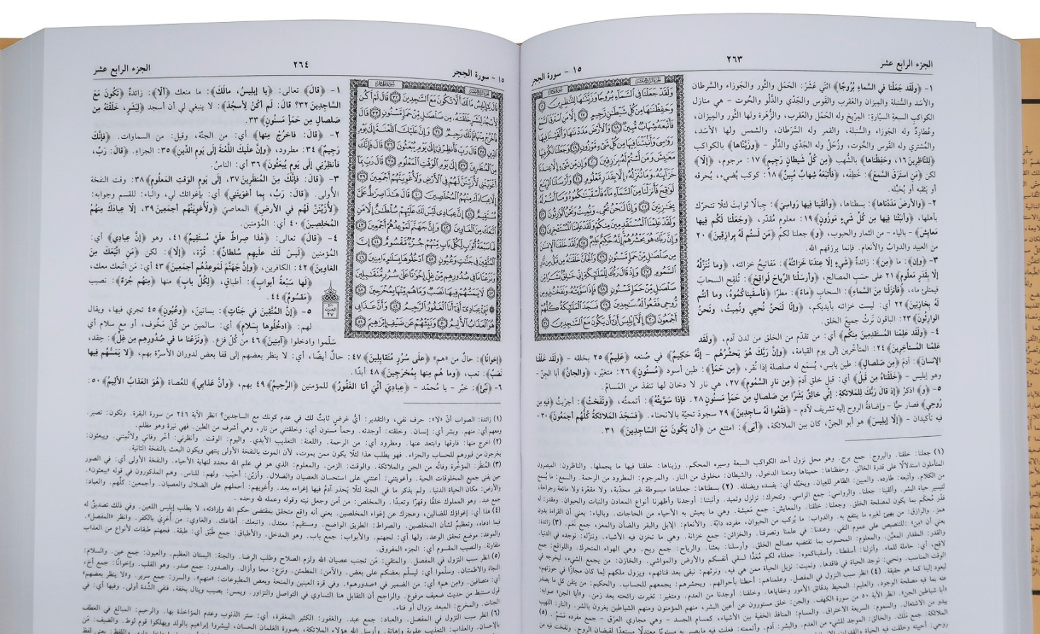 Il rassembla d'anciens manuscrits du livre, les ouvrages sur lesquels al-Jalalayn s'était appuyé pour sa composition et des sources de la bibliothèque coranique, afin de présenter à l'histoire un ouvrage érudit qui représente l'interprétation telle que les auteurs l'avaient voulue, l'enrichissant de coordination, de précision, de clarification et de correction. Il souligna également les lacunes, les illusions et les pratiques des différentes éditions, qui témoignaient d'arbitraire et de hasard. Il l'a ensuite présenté à un groupe d'éminents chercheurs, écrivains et mémorisateurs, qui l'ont examiné. Ces derniers ont exprimé leur admiration et offert leurs précieux commentaires et conseils. On peut désormais constater la spécialisation de cet ouvrage précieux : une interprétation orthographique contemporaine des versets, une distinction précise entre eux et les expressions d'interprétation, une ponctuation précise des lectures prescrites, la vocalisation nécessaire de chaque phrase, l'utilisation complète des signes de ponctuation, l'explication des signes ambigus ou obscurs, des citations concises des raisons de la révélation et l'attribution des nobles hadiths. Tout cela est accompagné d'index savants qui aident le chercheur à atteindre son objectif le plus rapidement possible, et d'une production artistique d'une maîtrise suprême.