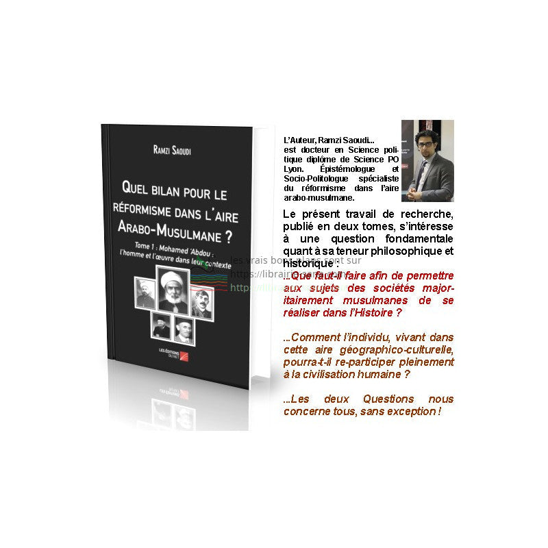 Le présent travail de recherche, publié en deux tomes, s’intéresse à une question fondamentale quant à sa teneur philosophique et historique : que faut-il faire afin de permettre aux sujets des sociétés majoritairement musulmanes de se réaliser dans l’Histoire ? Comment l’individu, vivant dans cette aire géographico-culturelle, pourra-t-il re-participer pleinement à la civilisation humaine ? En d’autres termes, le questionnement essentiel autour duquel s’articule notre étude, ayant pour point de départ le réformisme conçu par Mohamed ‘Abdou, est de savoir : quels sont les obstacles empêchant les populations des sociétés arabo-musulmanes d’accomplir leur propre modernisation de la pensée, de l’État et de la société ? Et quel est le rôle de la tentative de réforme sociopolitique et la transition d’ordre épistémique, initiée par Mohamed ‘Abdou, dans l’incapacité à dépasser cette situation de décadence ?