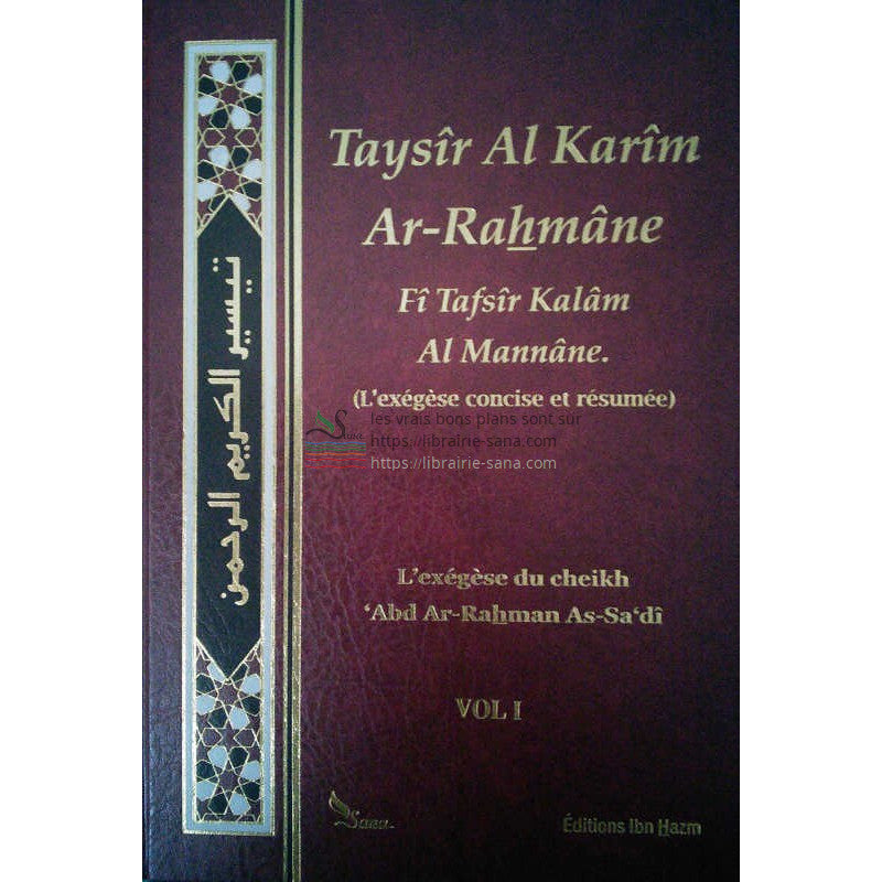 Taysîr Al-Karîm Ar-Rahmân Fî Tafsîr Kalâm Al-Mannâne, (l'exégèse concise et résumée) en 2 volumes (Français)